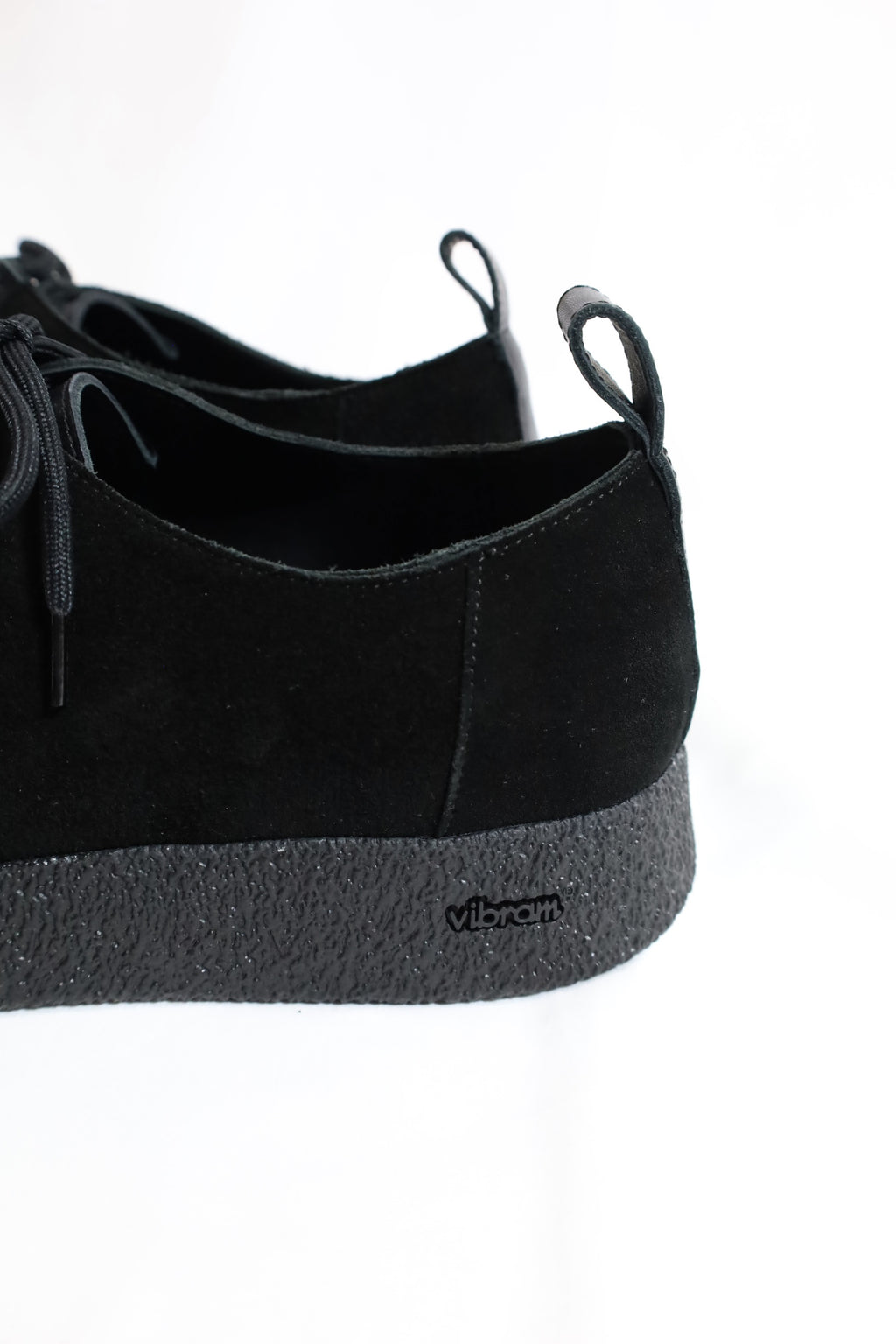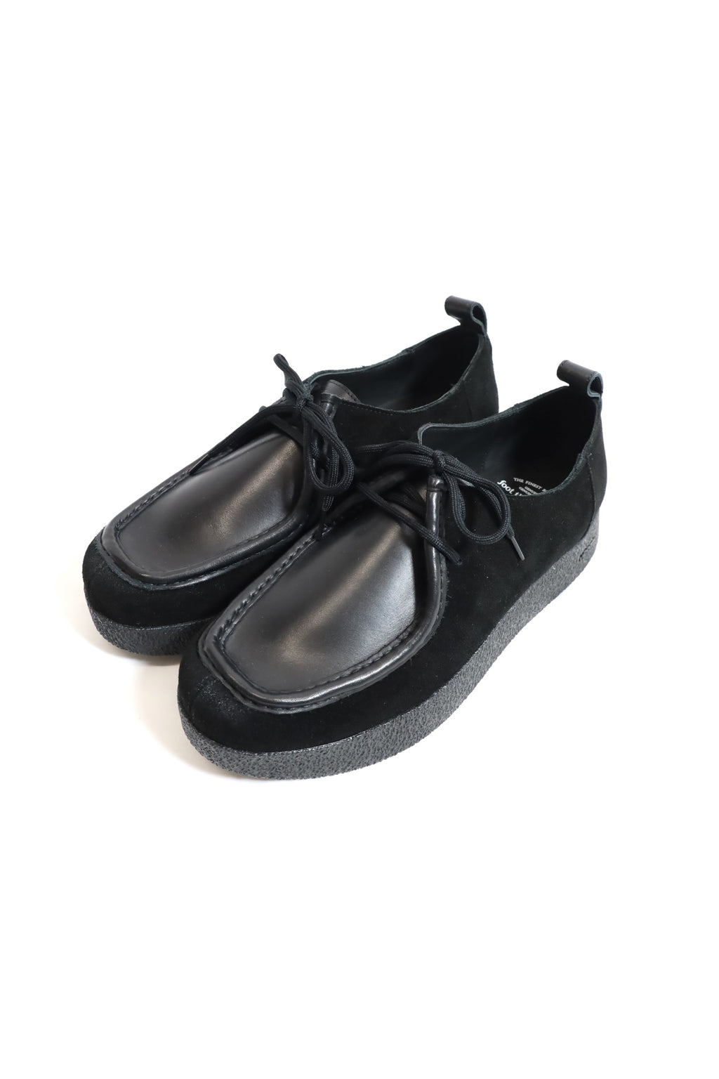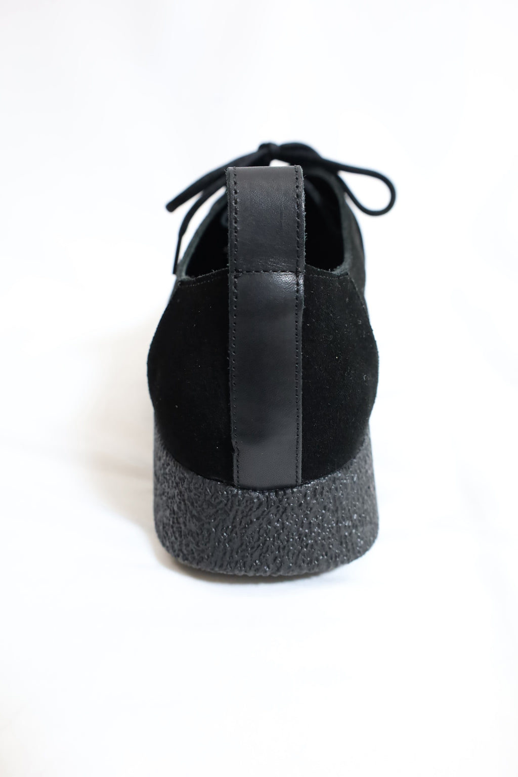 古典的なイメージのモカシンシューズを、つま先にボリュームを持たせた特徴的なラストを用いて制作しました。快適な低反発PU素材のクッションインソールと、クレープ柄がリアルに再現された<Vibram®>社製“Crepe”をソールに採用。このソールは、内側に発砲ウレタンを使用することによって軽量化され、クッション性が向上している点が特徴です。