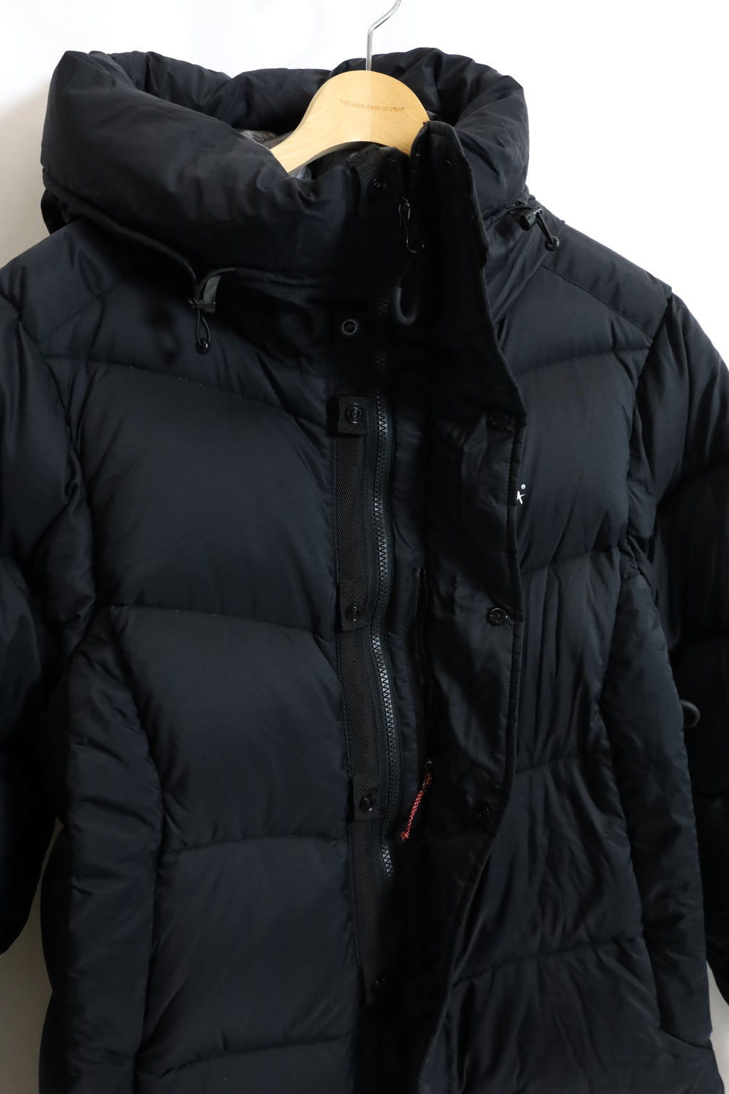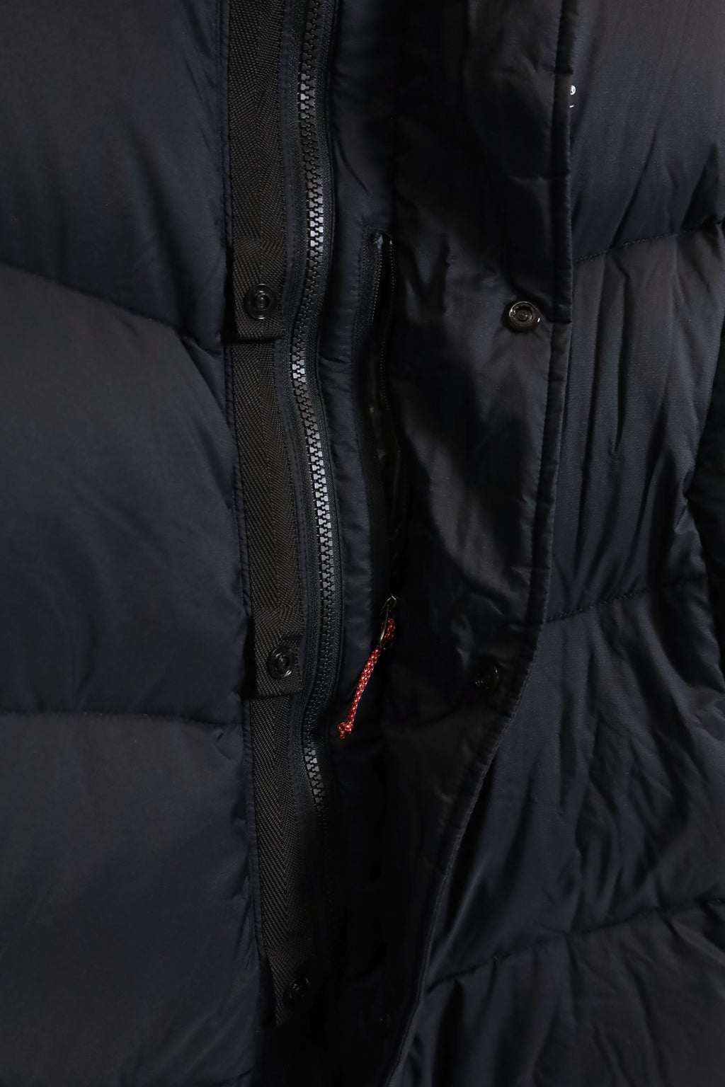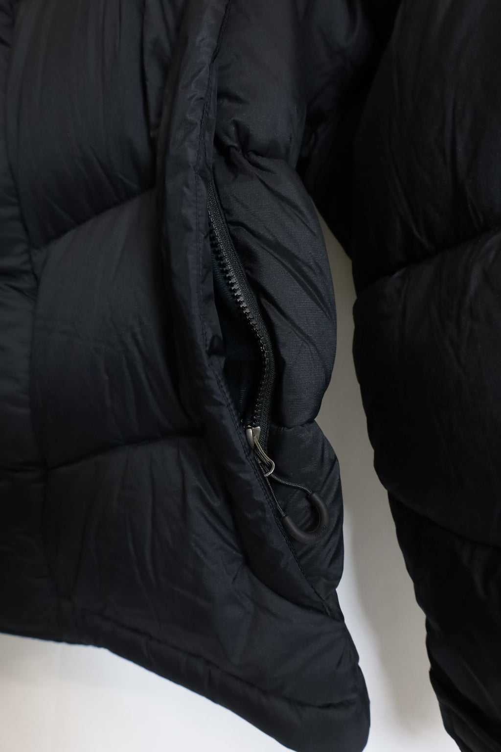 ‧⾝頃には通常のダウンのような横段のダウンステッチではなく、傾斜をつけて少しスポーティなソリッドさを出している。