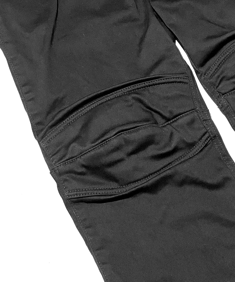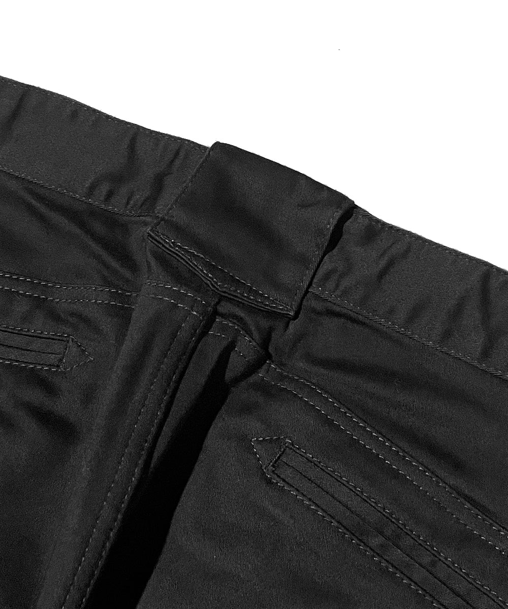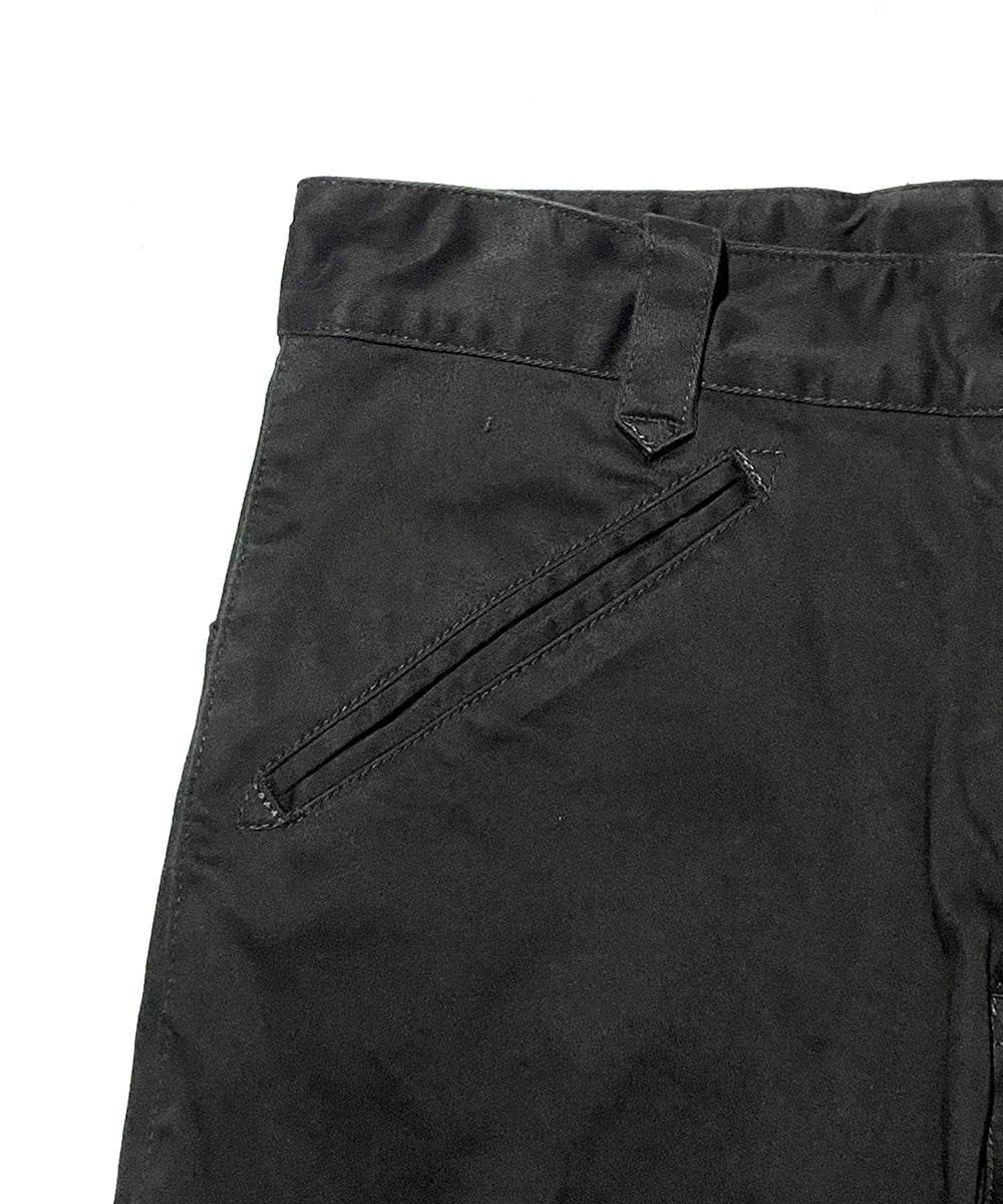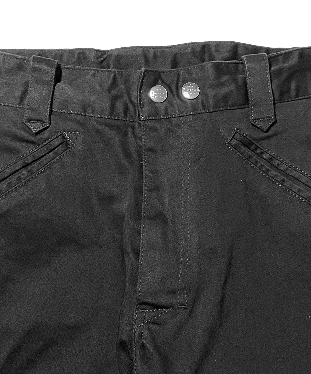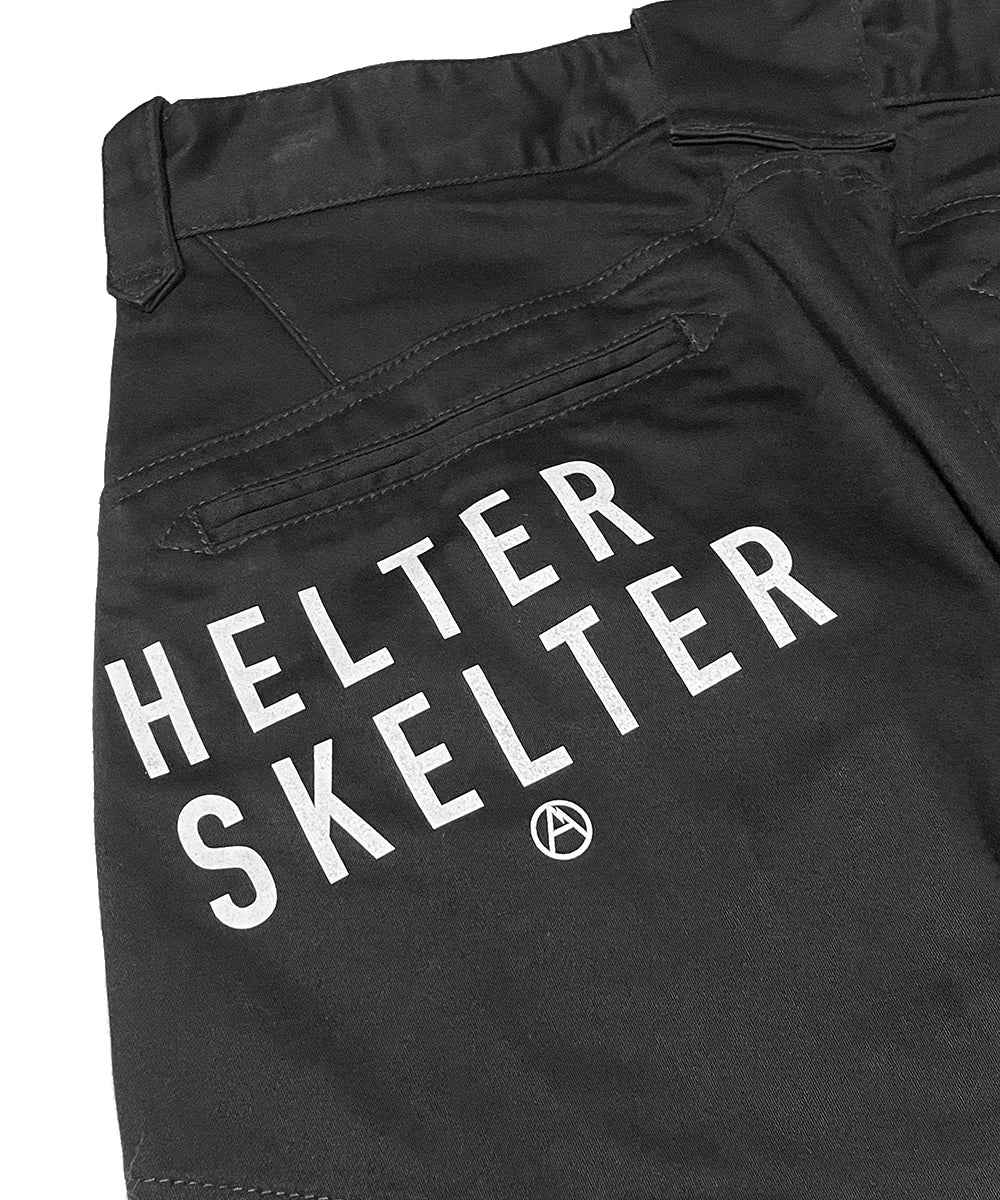RER101、MUSTANGをベースにした、パンツです。やや厚手のストレッチコットンで制作。左のお尻にはHELTER SKELTERプリント。膝には柔らかいウレタンが入っており、膝の立体感とクッションの機能性を。裾はジェ○ラル時代を彷彿とさせるベルクロ仕様。ONE WASH済み