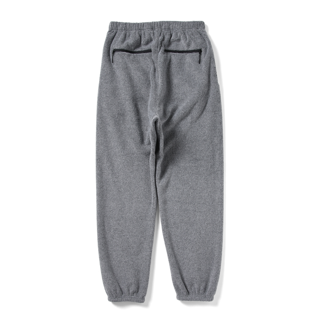 トップスのラグラン袖に合わせて、一枚足パターンのフリースパンツです。レーヨンの落ち感とちょうど良い肉感が、よりシルエットを綺麗に魅せます。傍にシームが無いので、素材の気持ちよさを十分に引き立て、ポケットにはメッシュを使用し、蒸れにくい設計になっております。全てのポケットがファスナーポケットになっており、実用的な仕様となっております。
