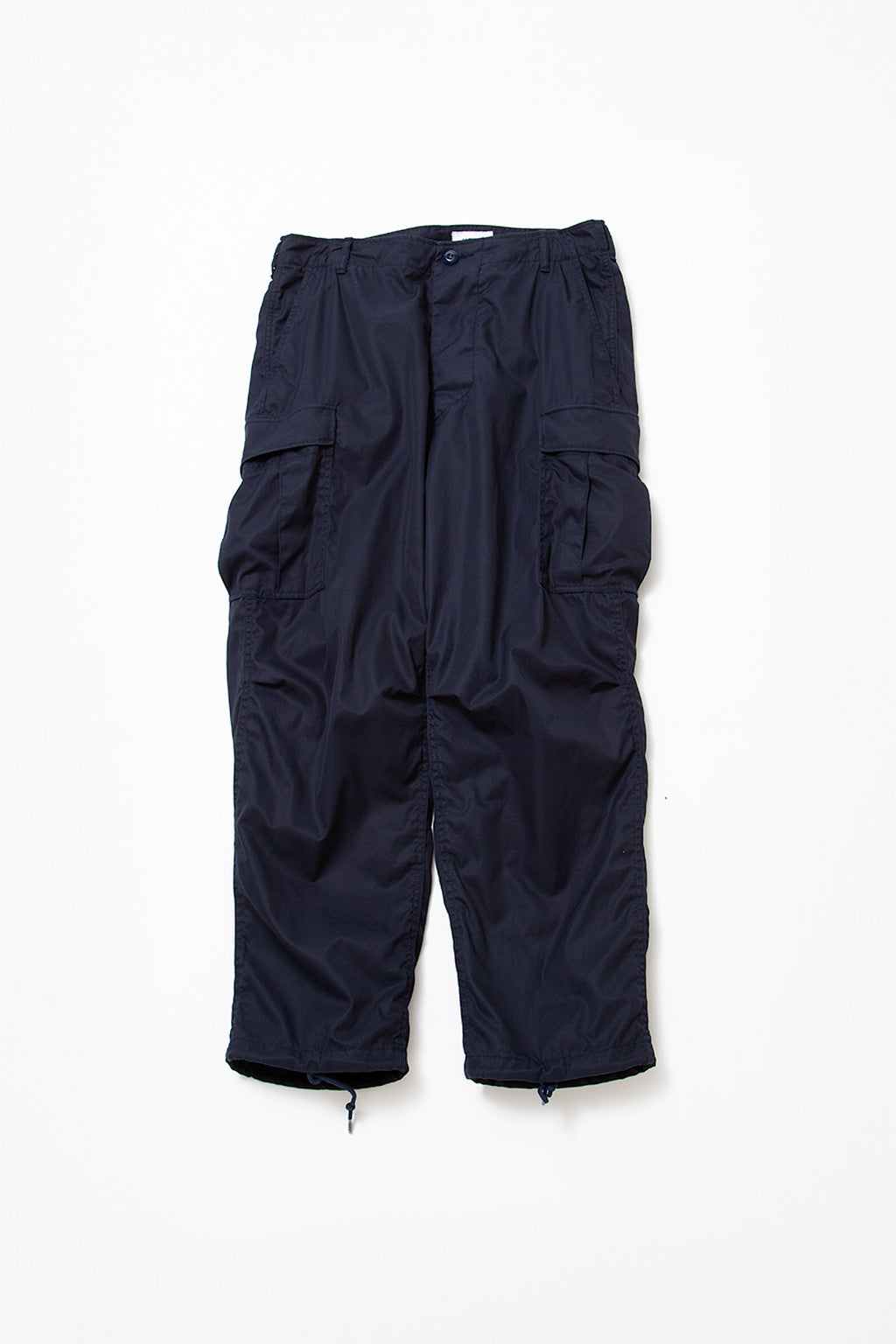 1960 年代ベトナム戦争で使用された米軍ジャングルファティーグパンツ(2nd モデル)に着想を得た、ブランドのシグニチャーアイテムです。ジャングル戦を想定した軽量かつ機能的な設計を継承し、ゆったりとしたシルエットと豊富なポケットが特徴。無駄を省いた「必要最低限の機能美」を体現しています。