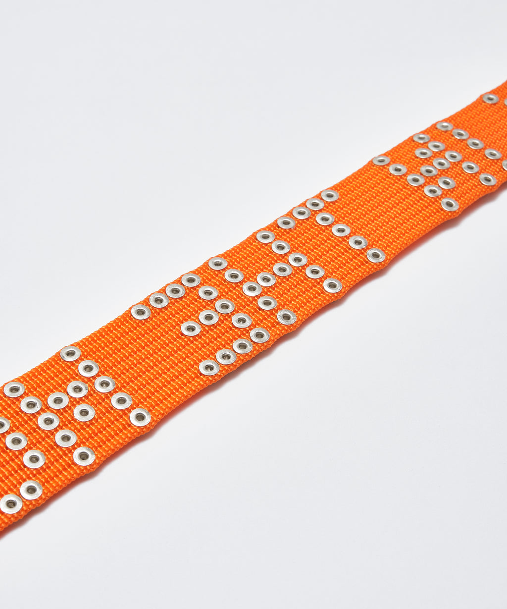 シーズンのフィーチャーディテールで欠かせないのがリベットシリーズ。ナイロンベルトに、ブランドスローガンである”HOLIDAY IN THE MOUNTAIN”を丸みのあるスタッズを打ち込んだ意欲作。レザー×鋲とは異なる山側のパンクマインドを表現。