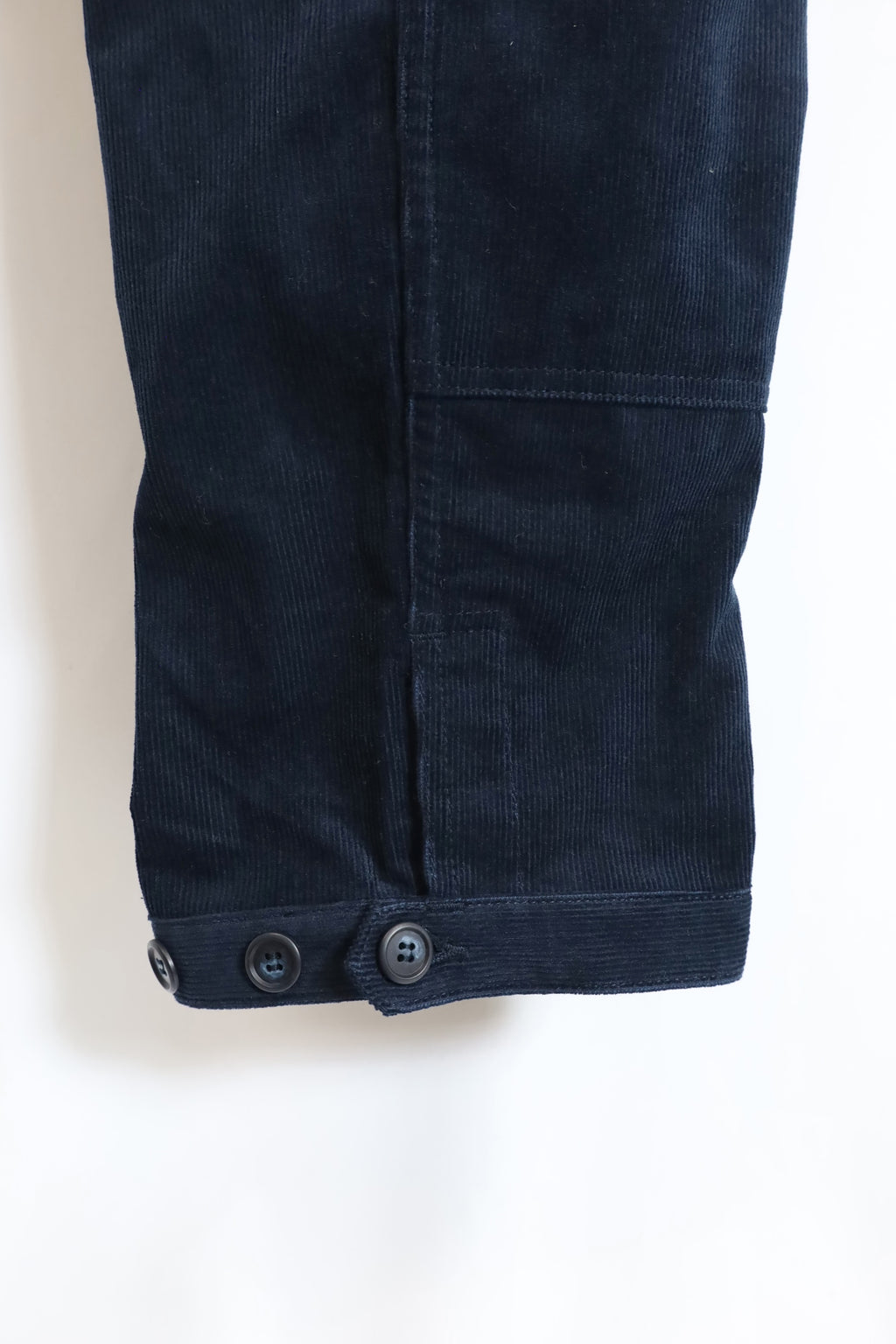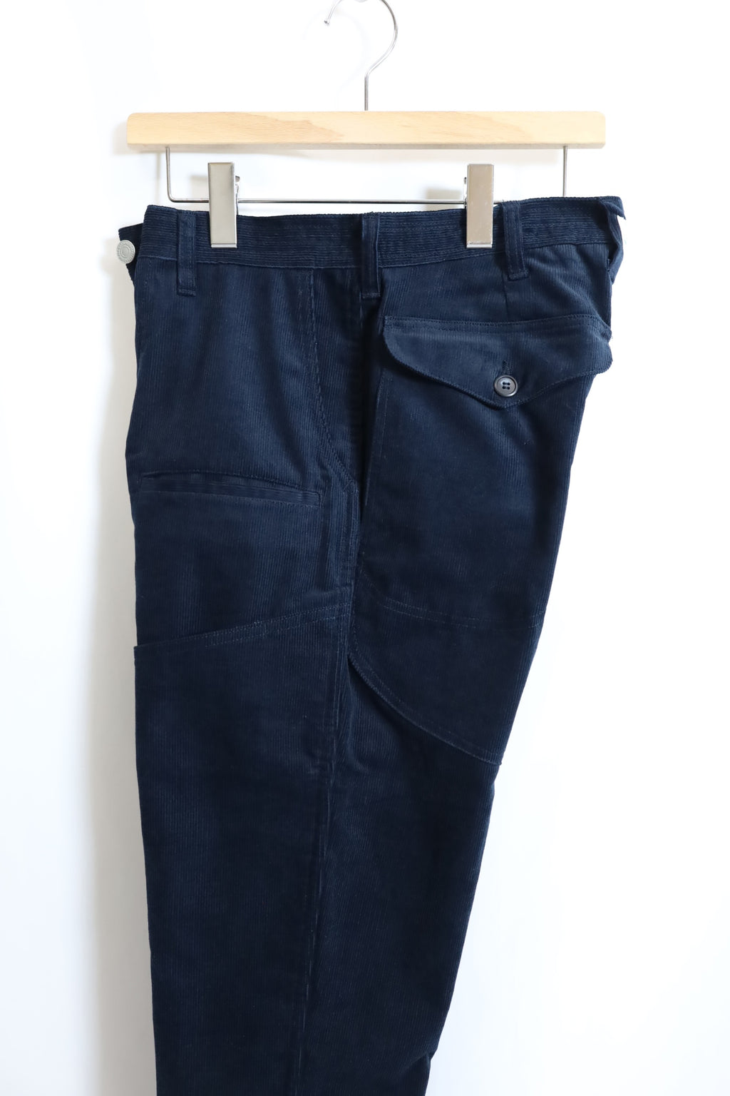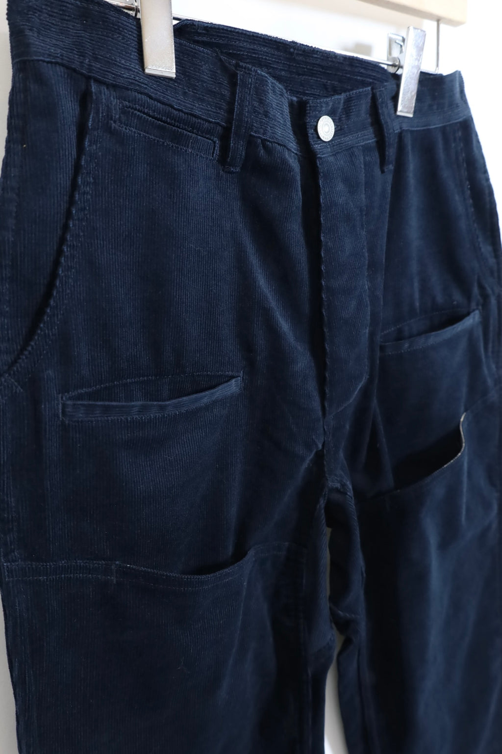 ハンティングパンツをベースにしており、後ろポケットは二重になっており、勿論フロントはダブルニー仕様です。ダブルニー部分は上から使えるポケットが仕込まれています。細かいディティールはササフラスお手のもの。裾はDigs Crew Pants 4/5のようにダーツはなく、程よい太さがボタンで絞ることによってニッカーズみたいにスッキリとしたシルエットになりスタイリングの幅が広がります。