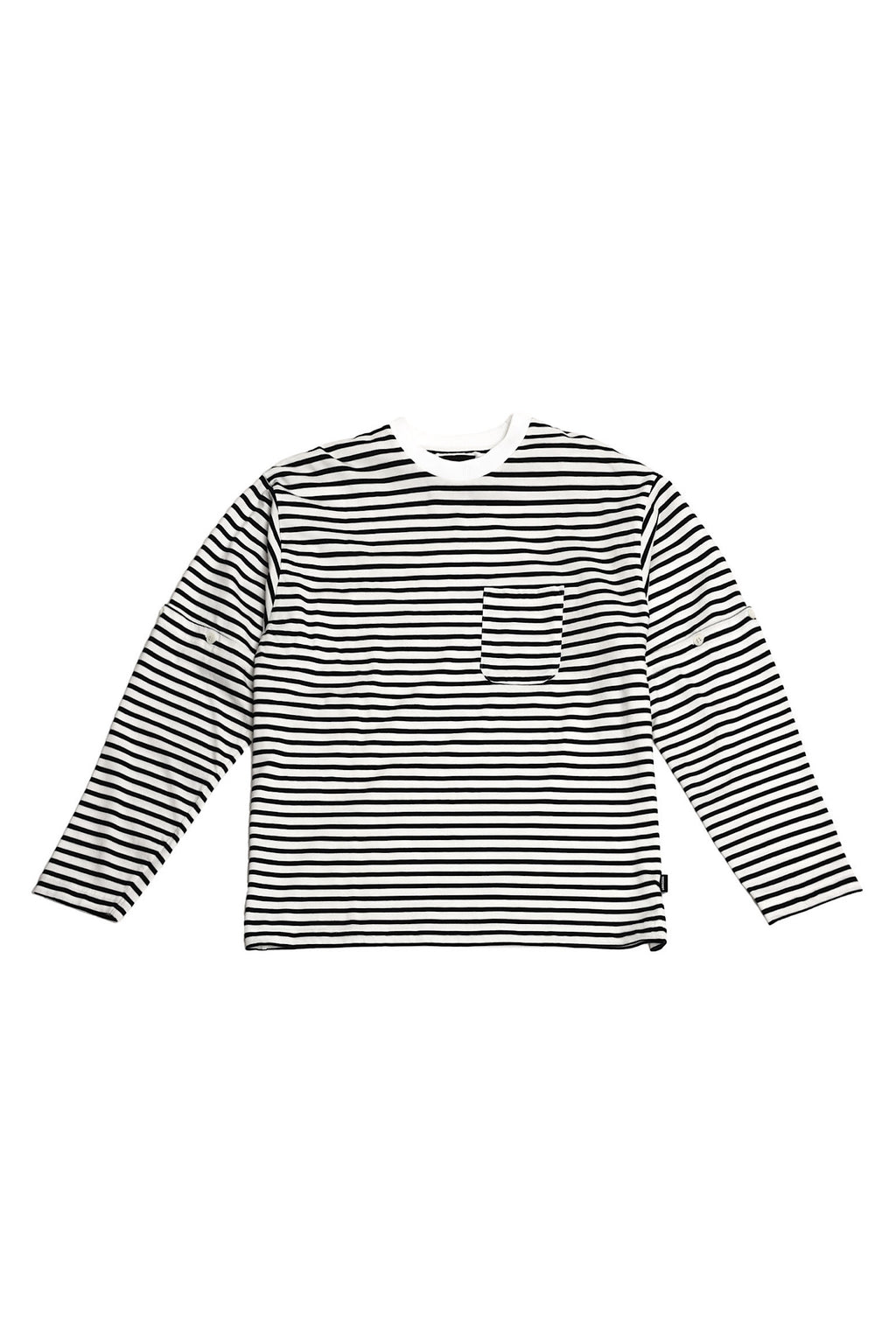定番のボーダーL/S TEEをベースに、着脱可能なスリーブを組み合わせた可変型デザイン。