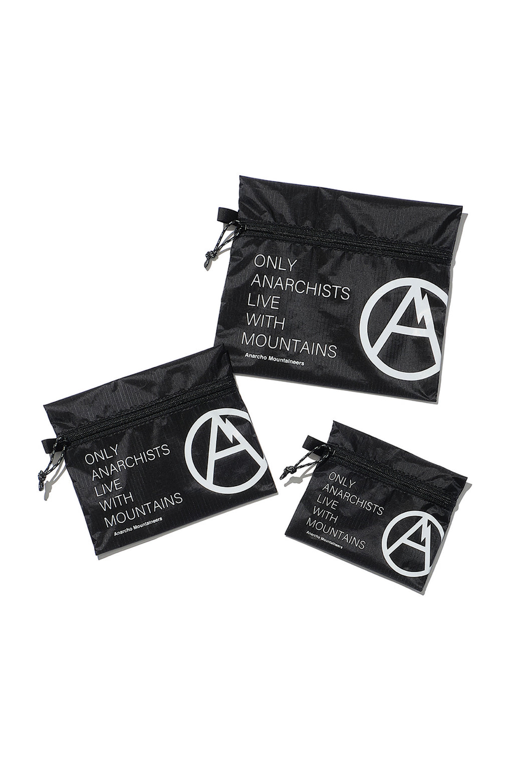 セイルクロスでもお馴染み軽量で耐久性に優れたスピンネイカー素材のポーチは大・中・小、3サイズセット。O.A.L.W.M.ロゴに、山Aマークを添えたプリント入りです。