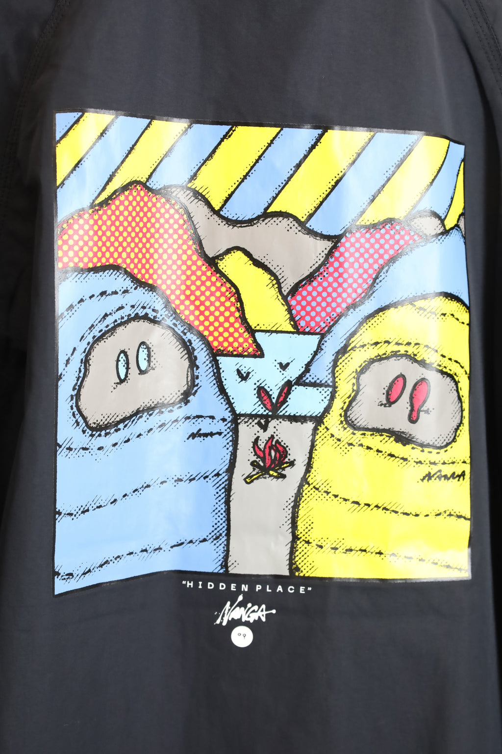 デザインのテーマは“HIDDEN PLACE”。「NANGAと言えばやはり寝袋でしょ」と語る神山氏が、息子との山での時間を思い浮かべながら描いたイラストで、自然の中での食事や焚き火を楽しみつつ、寝袋の中で交わす何気ない会話を切り取った温かみのあるワンシーンを表現しています。ベーシックなシルエットのコーチジャケットは軽やかで持ち運びやすく、アウトドアからタウンユース、さらには旅先でも活躍する万能アウターです。