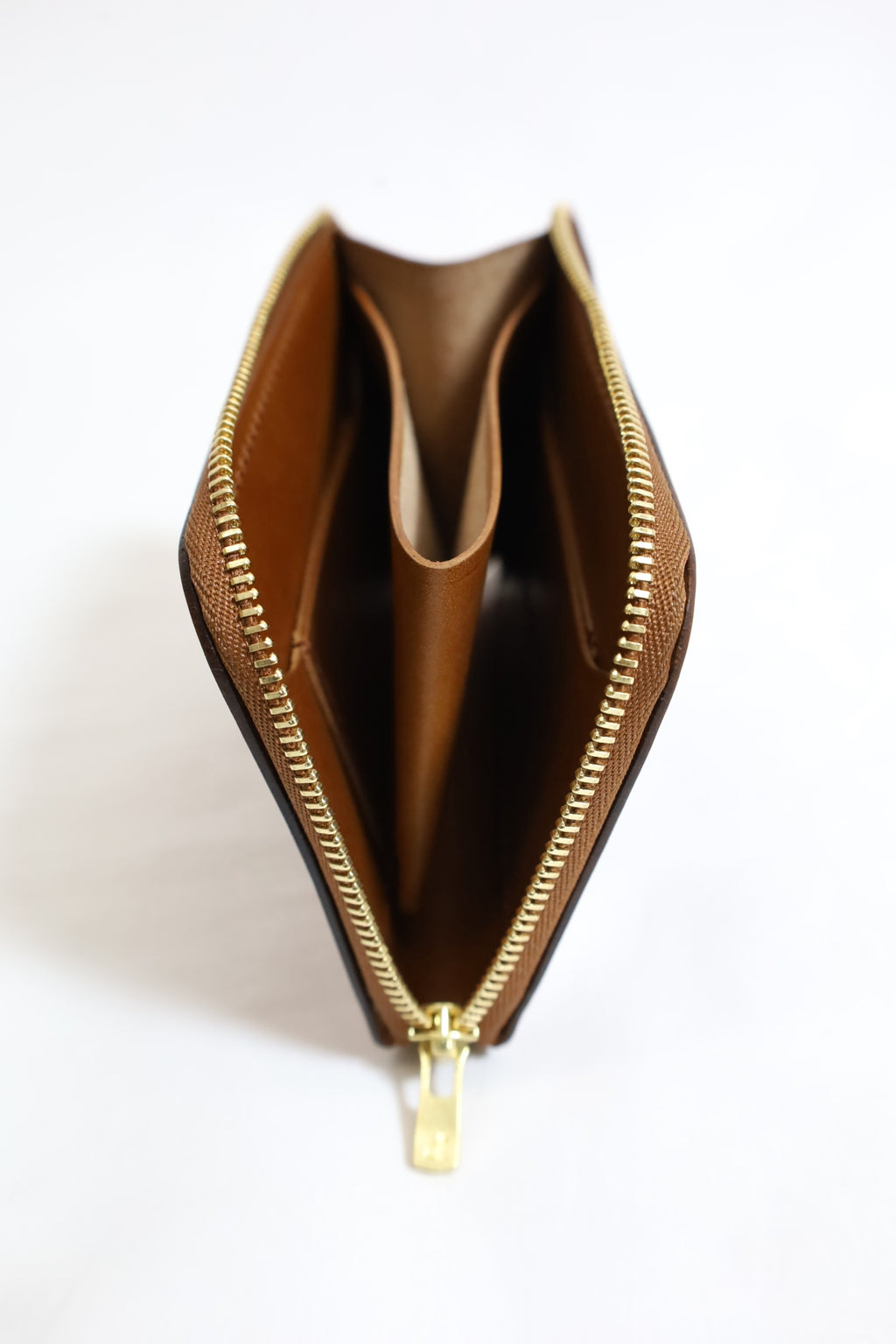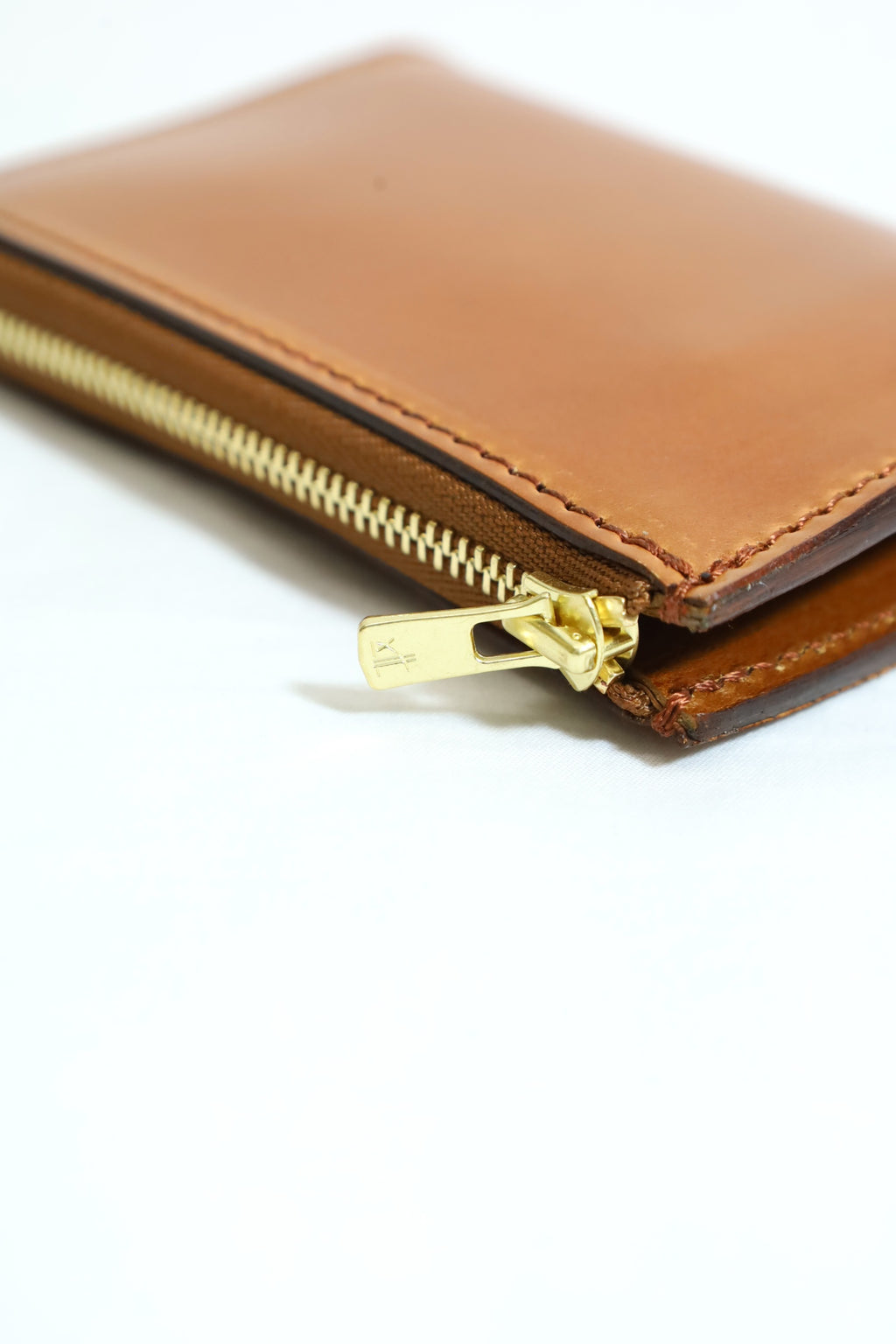 マチが付けられたジップコンパクト財布。サイドに取られたマチが大きく開き、コインの出し入れもスムーズに。カード室が両サイドに2室付いているので、カード類や二つ折りにしたお札などの仕分けも可能です。