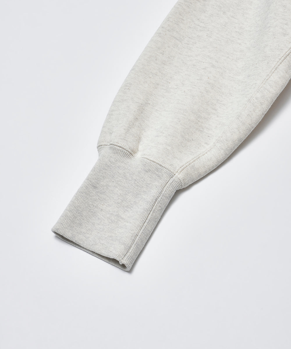 さらにヴィンテージスウェットを参考にした肩傾斜のない動きやすい形。袖口には長めのリブを採用しており、作業時は折り返して、ライディング時は長いままジャケットの袖口から出すことで防風性を発揮。デザイン性と機能性を兼ね備えた一着です。
