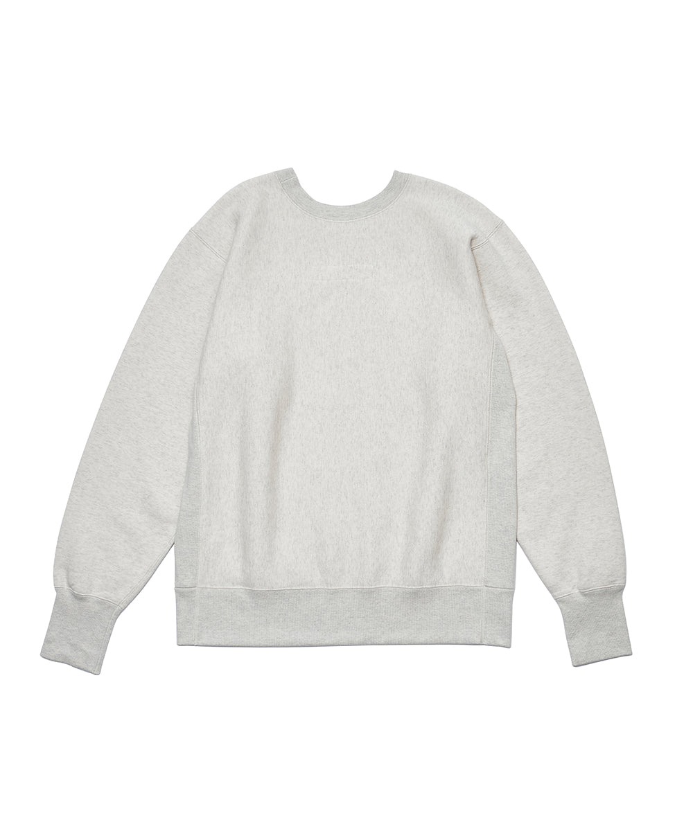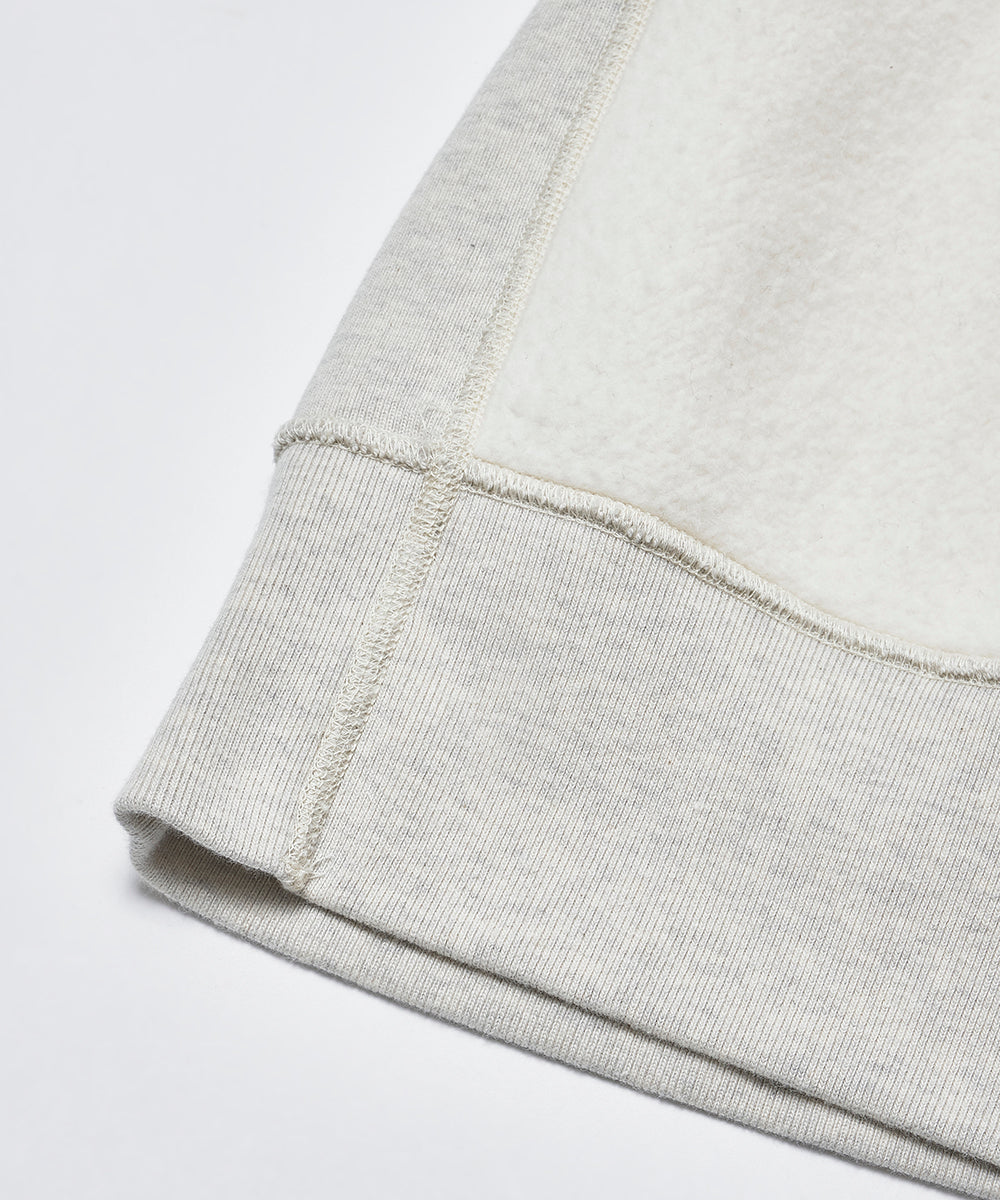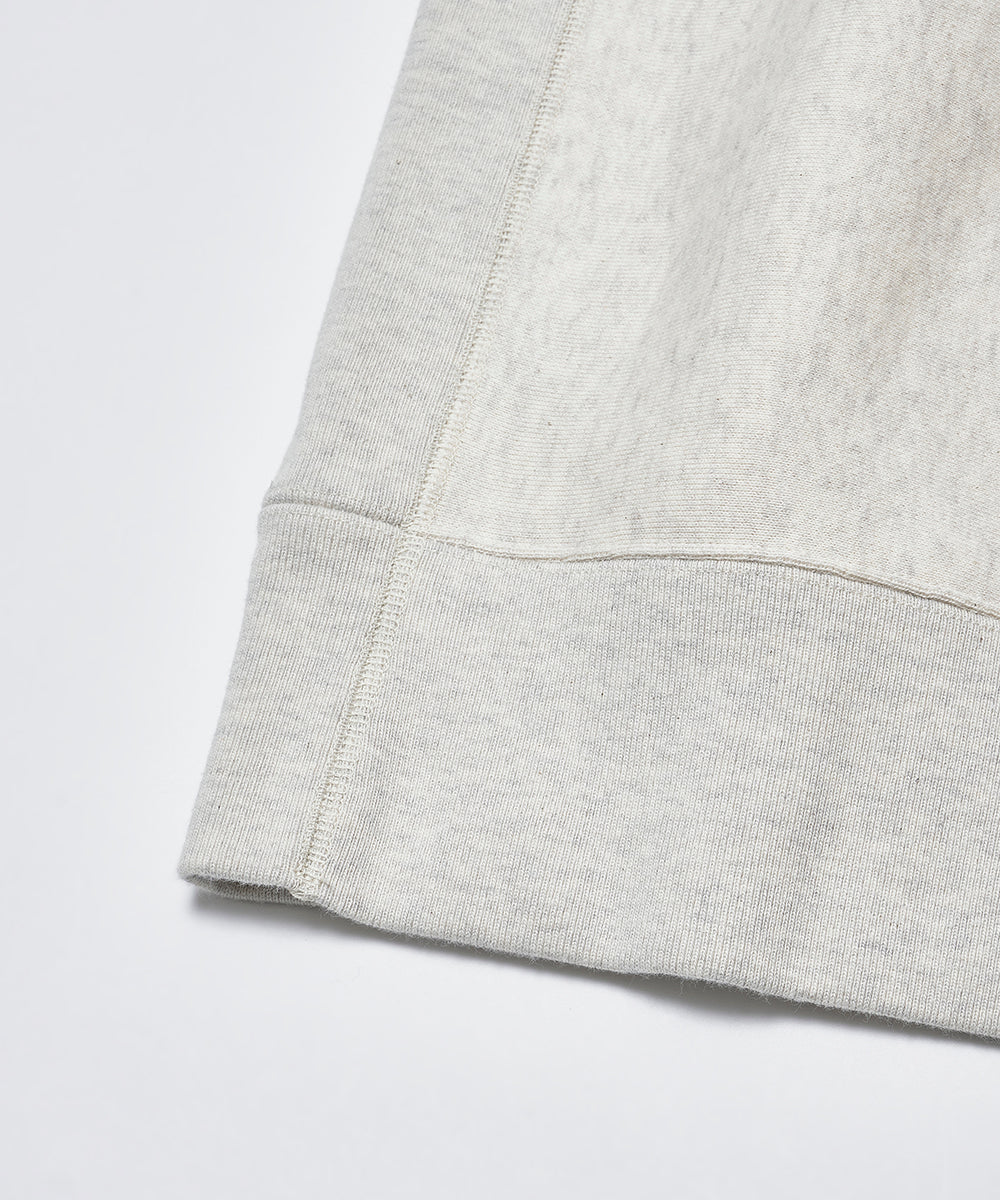 シルエットは、ヴィンテージスウェットを参考にした「肩傾斜のない独特の形」。厚みのある生地と重厚な仕立てで、長く愛用できる仕上がりになっています。