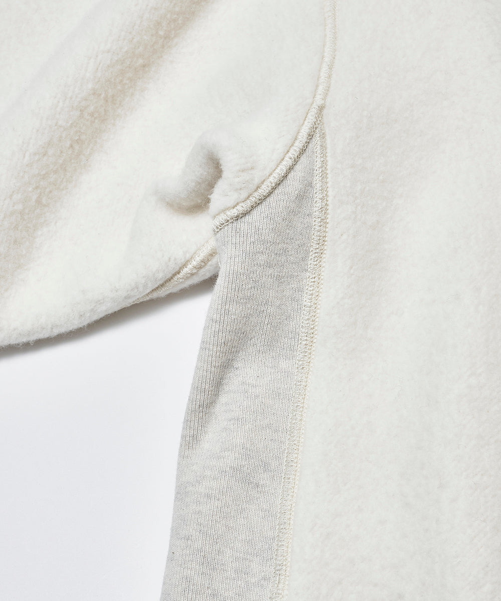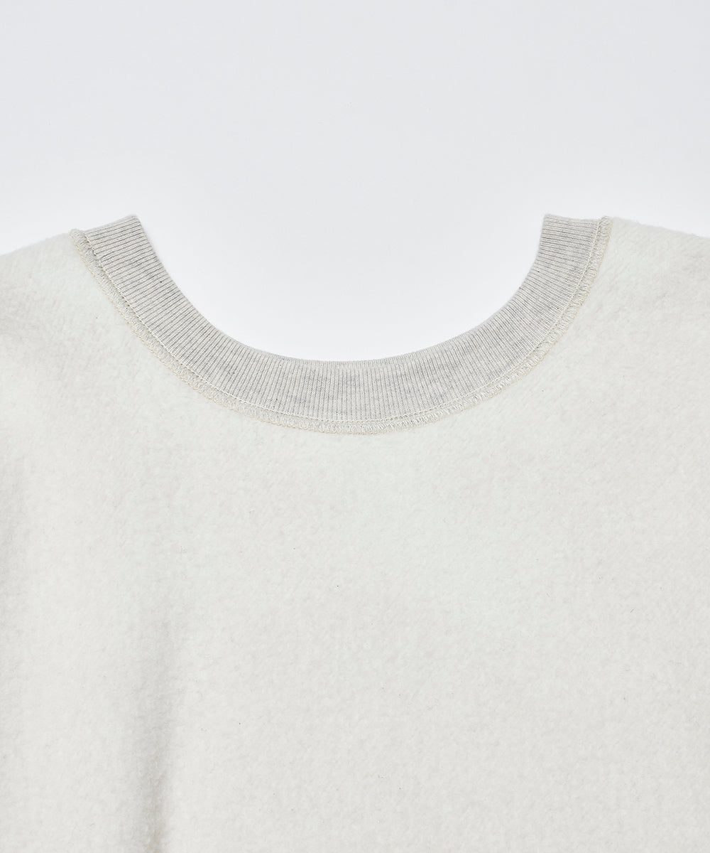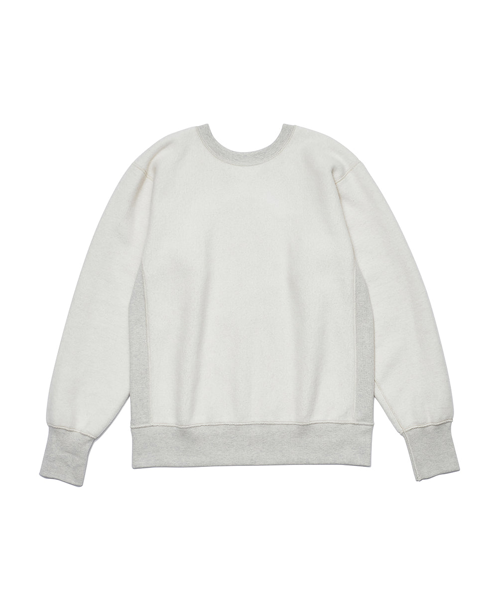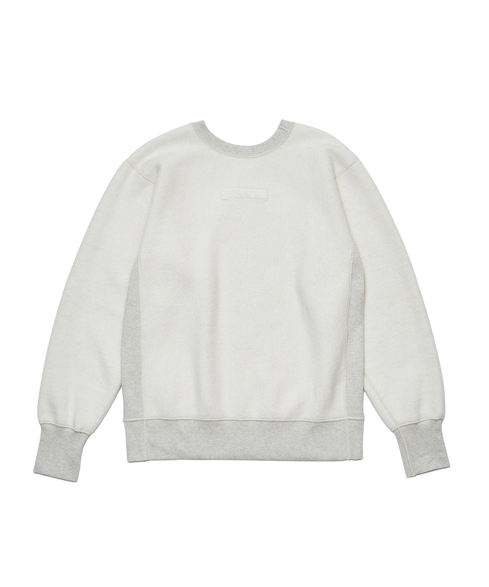 シルエットは、ヴィンテージスウェットを参考にした「肩傾斜のない独特の形」。厚みのある生地と重厚な仕立てで、長く愛用できる仕上がりになっています。