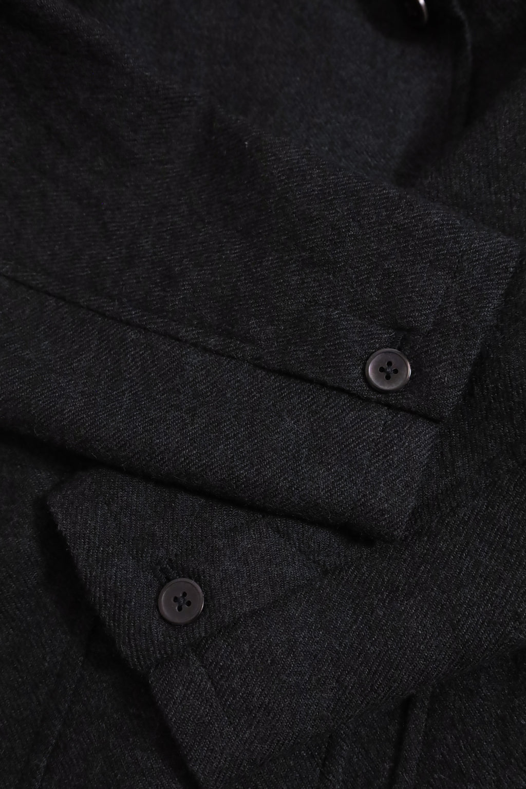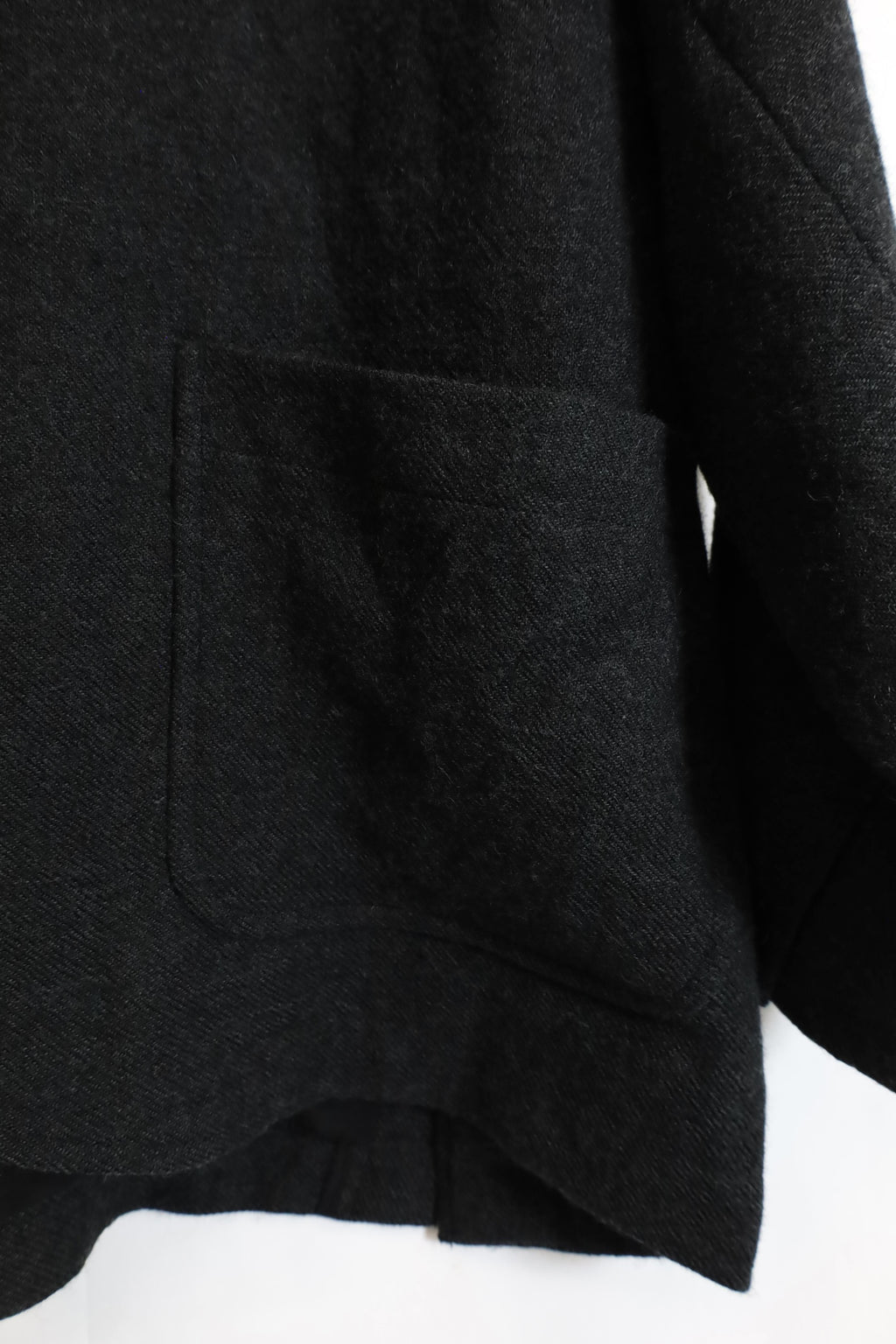 3つボタンのジャケットはパッチポケット、袖までキュプラの裏地が張り合わせています。袖は一つボタンの本切羽、浅めのサイドベンツ、チロリアンジャケットのように襟元が浅いのが特徴です。